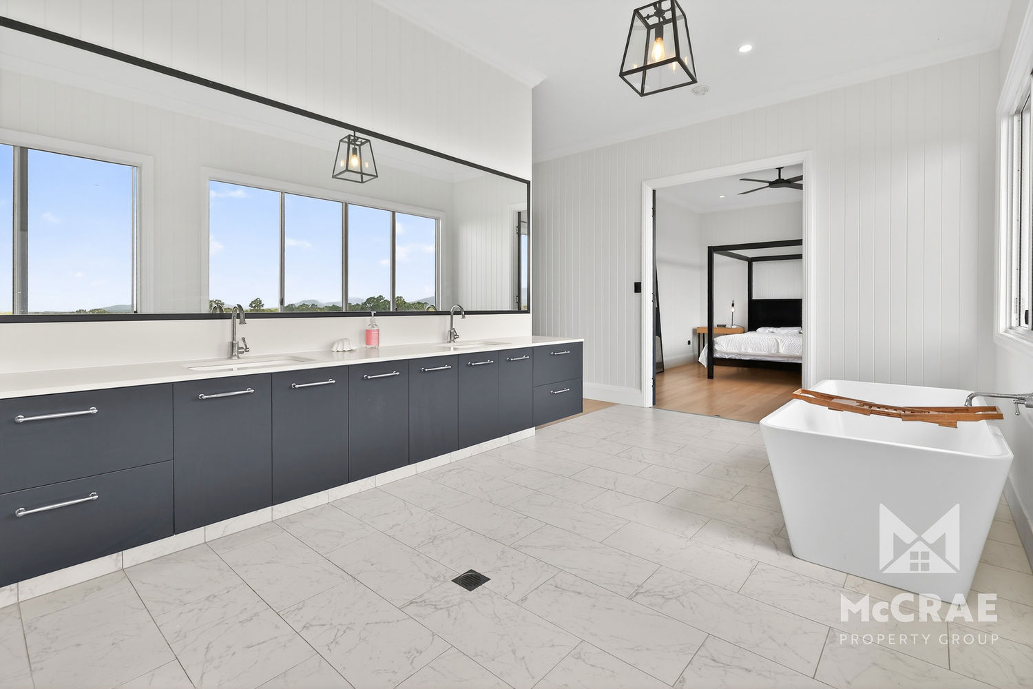 As you venture down the hallway, you begin to uncover the sumptuous bedrooms. The master bedroom is first, and OMG, you have not seen anything like this in Bowen. Double doors greet you as you pass a massive walk in robe fully appointed with built-in cabinetry and storage, and then through to the biggest ensuite you have ever seen. But that is not all, this ensuite also features huge windows across the rear, drawing the wonderful rural aspect straight into your ensuite. You can soak in tub and look out over the property and your animals while you relax. The master bedroom itself is behind two further double doors just by the ensuite, offering the ultimate in privacy and seclusion. Directly opposite the master is the family bathroom that is equally as exceptional, offering ample space for the kids, easy cleaning and room for multiple people to use the space with separate zones for the vanity, shower and WC. Two further bedrooms then flow from here, offering room for king size beds if required and both featuring walk in robes. At the very end of the home is a custom-built laundry room with a beautiful barn door feature and then access to the carport from here.