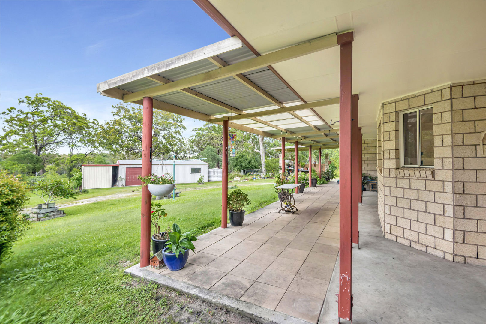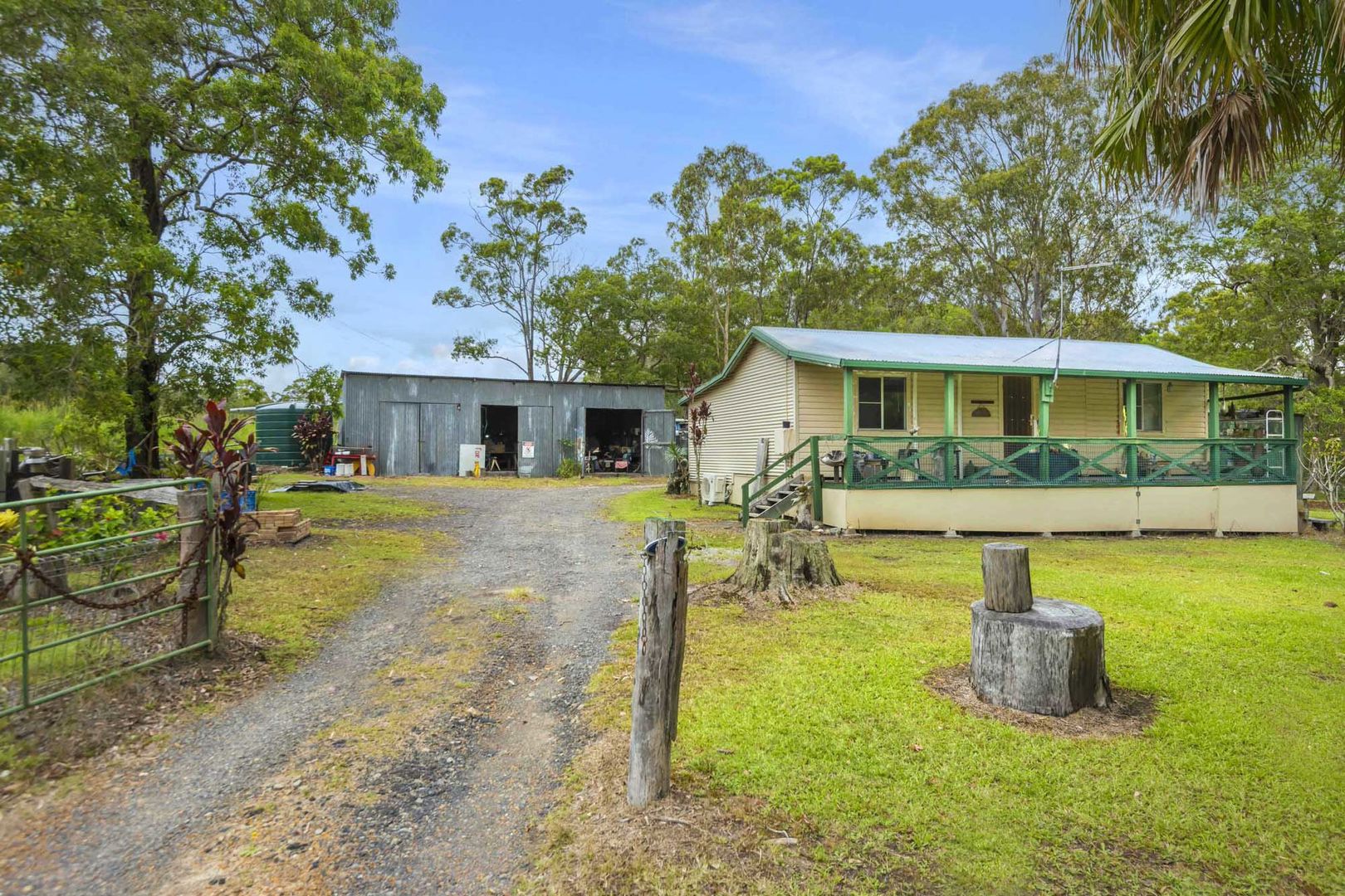 There's even additional shed space and a covered area for machinery, in addition to the large remote double garage.