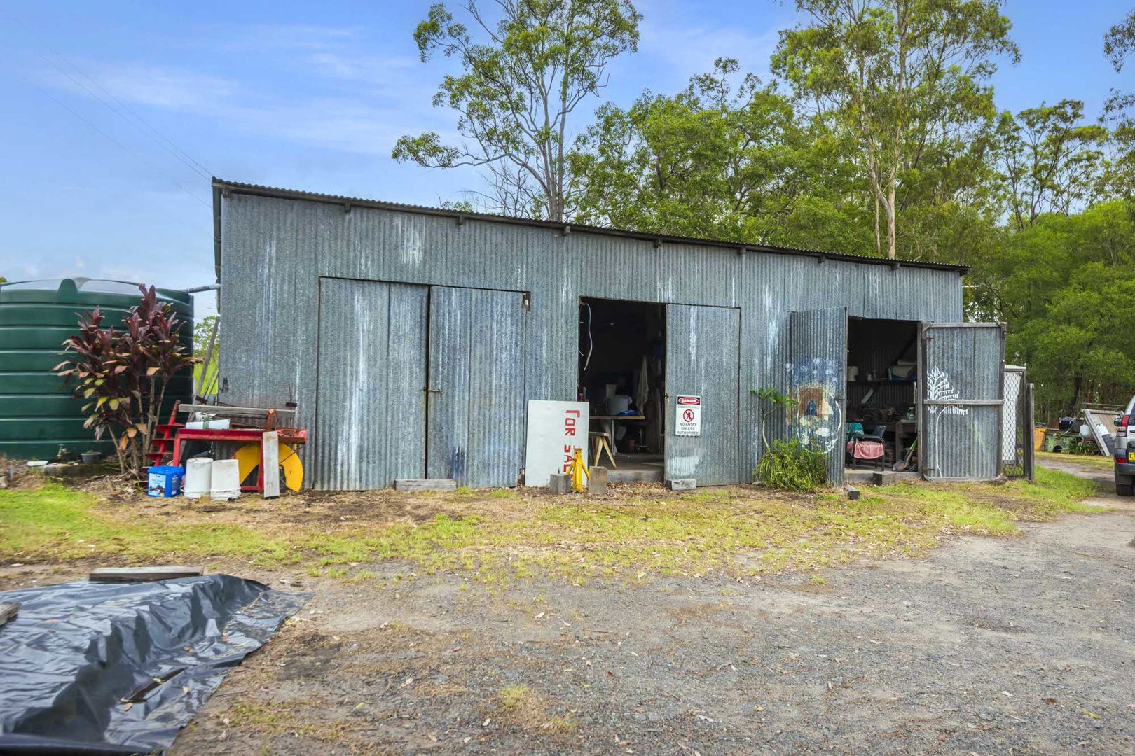 There's even additional shed space and a covered area for machinery, in addition to the large remote double garage.