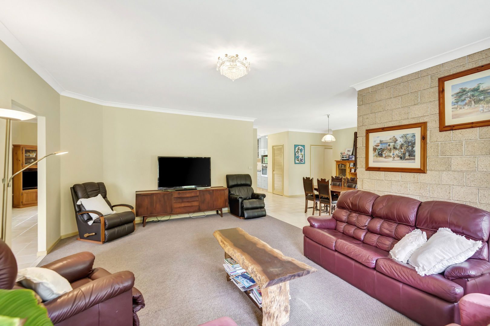 - Open plan kitchen, dining and lounge with air conditioner