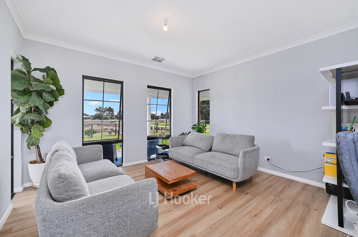 Set on a picturesque 3.73-acre parcel in the peaceful surrounds of Dardanup West, this newly built modern home offers the perfect balance of contemporary comfort and rural lifestyle. Designed with space and functionality in mind, the home features high ceilings throughout and a light-filled open plan living area. The stylish kitchen is a true centrepiece, boasting stone benchtops, quality 900mm appliances including an induction cooktop, and a well-appointed butler's pantry. An activity area, study nook, and double lock-up garage add further practicality for modern family living.
