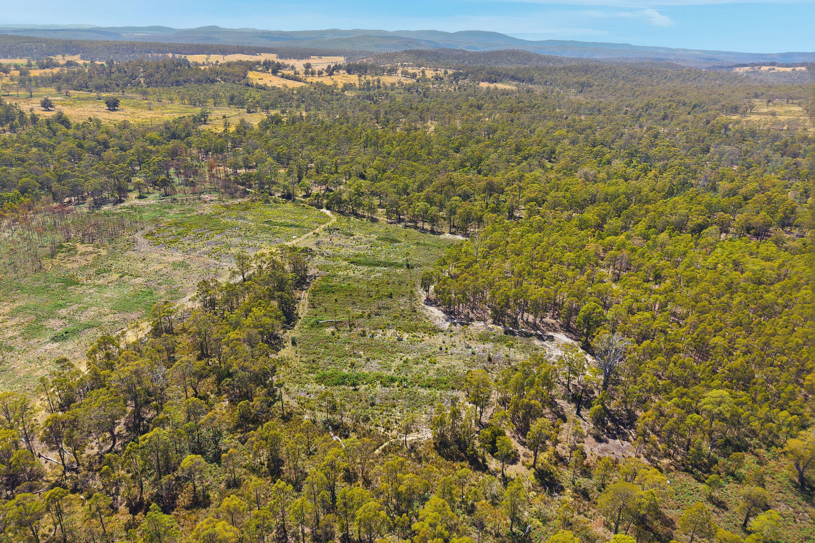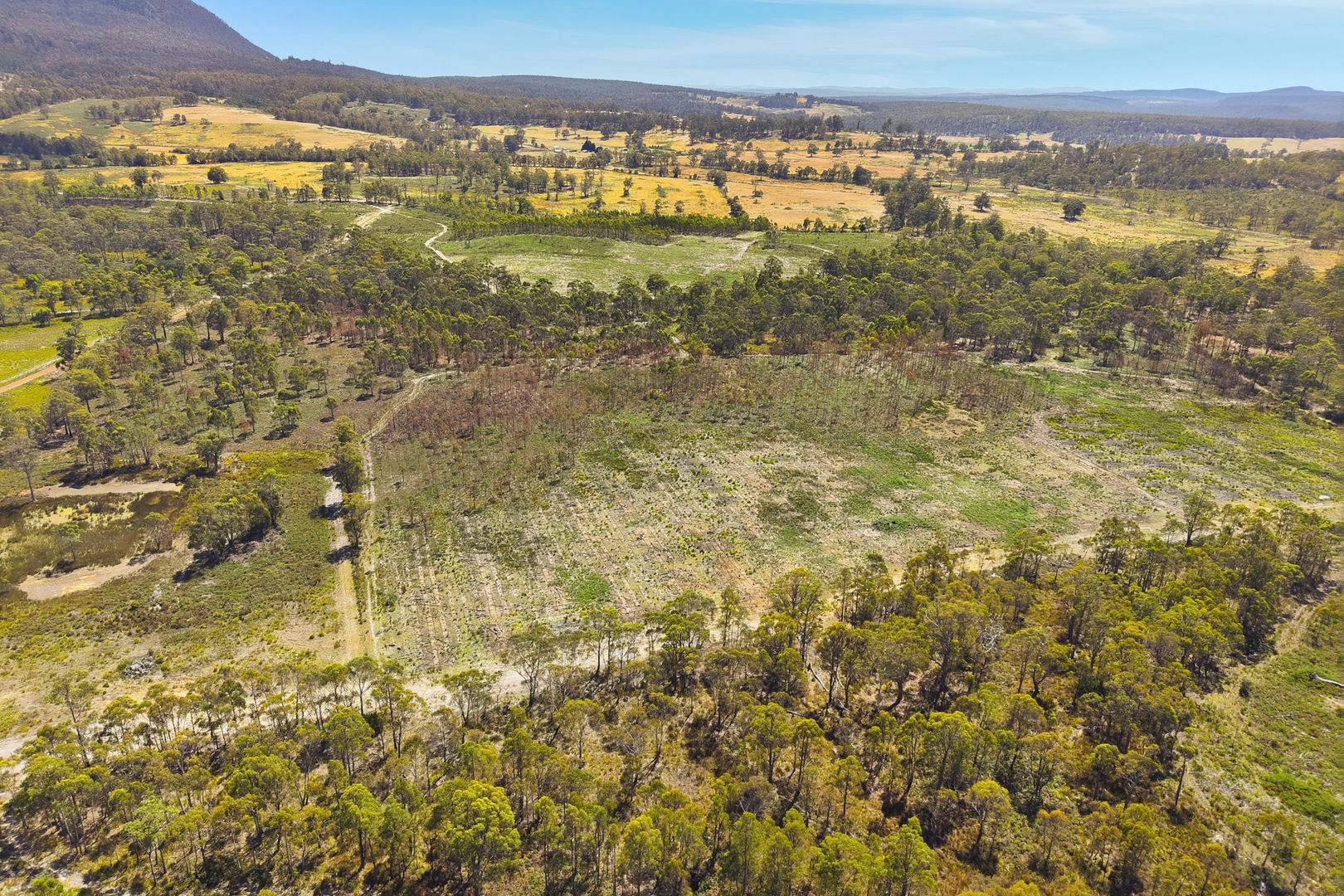 Formed internal access tracks allow ease of movement throughout the property, enhancing usability and opening up options for building, grazing or recreational use. Marketed as "off-grid by choice", the land appeals to buyers seeking independence and sustainability, with the option to explore future connection subject to their own enquiries.