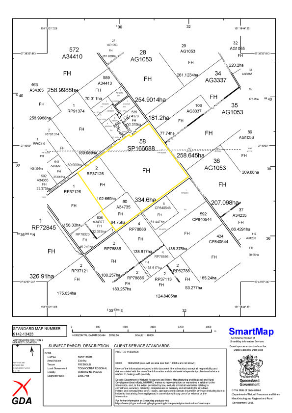 • 502.019 ha (1240.5* acres), 3 freehold lots, bitumen frontage, 27*km Cecil Plains, 44*km Pittsworth, 78*km Toowoomba