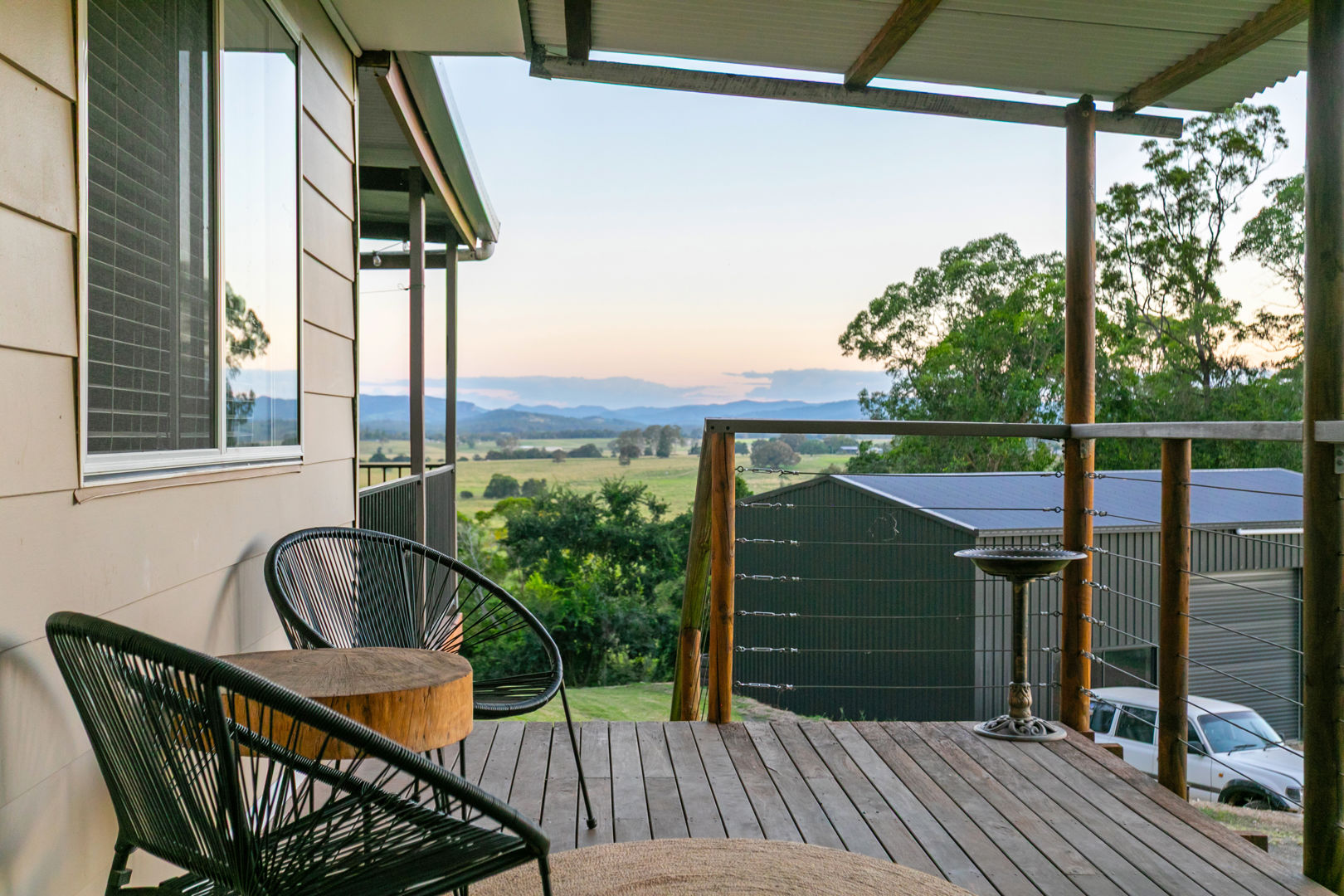 Relax on the deck and savour spectacular sunsets at wine o'clock as you are serenaded by birdsong and contemplate the day just gone and what tomorrow may bring. All three decks showcase a different aspect, and all provide comfortable, inviting space for just being in the moment.