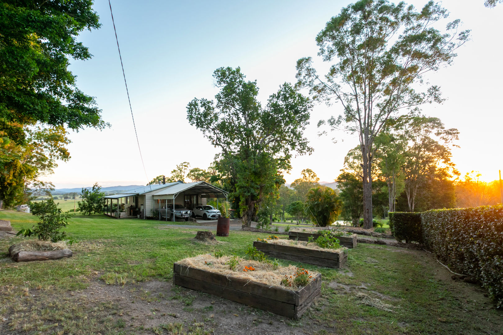 The land is gently undulating, flood free, mostly useable and runs right down to the Mary River where you can fish, kayak, paddleboard, swim, or picnic. Established native vegetation, fruit trees, and raised garden beds populate the grounds and there's masses of space for children and pets to play and roam outdoors soaking up sunshine and fresh country air.