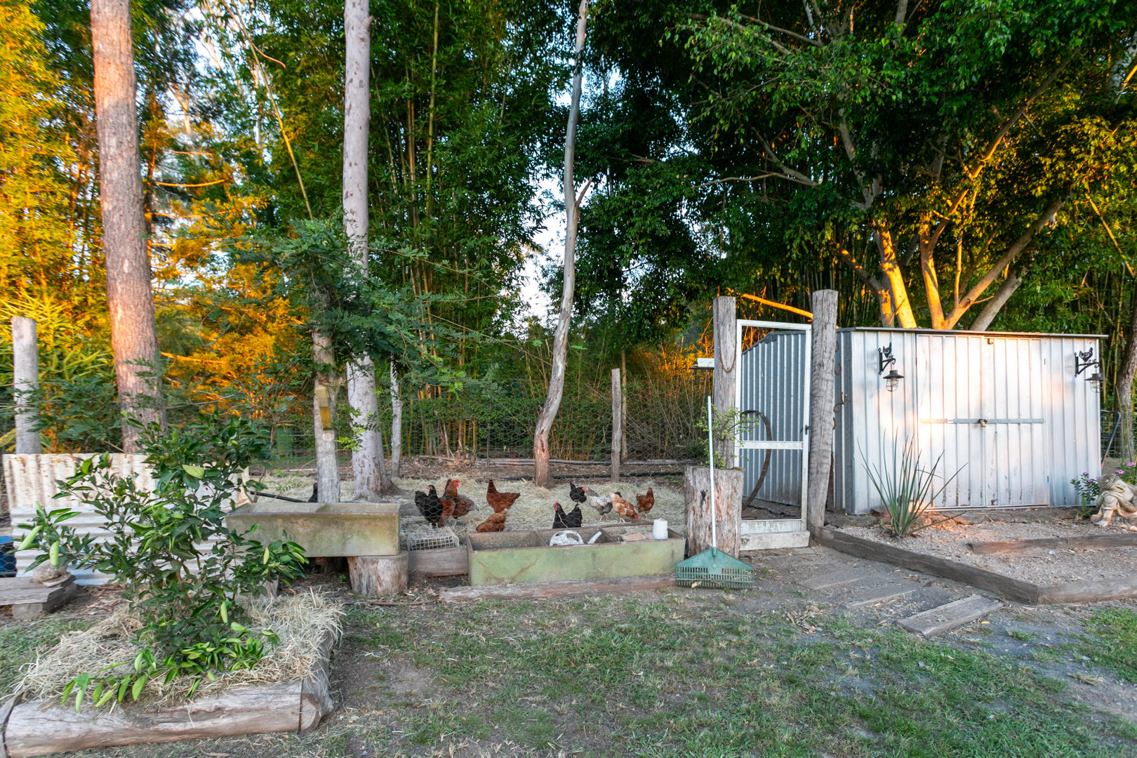 • 5 x water tanks, chicken pen for free-range eggs