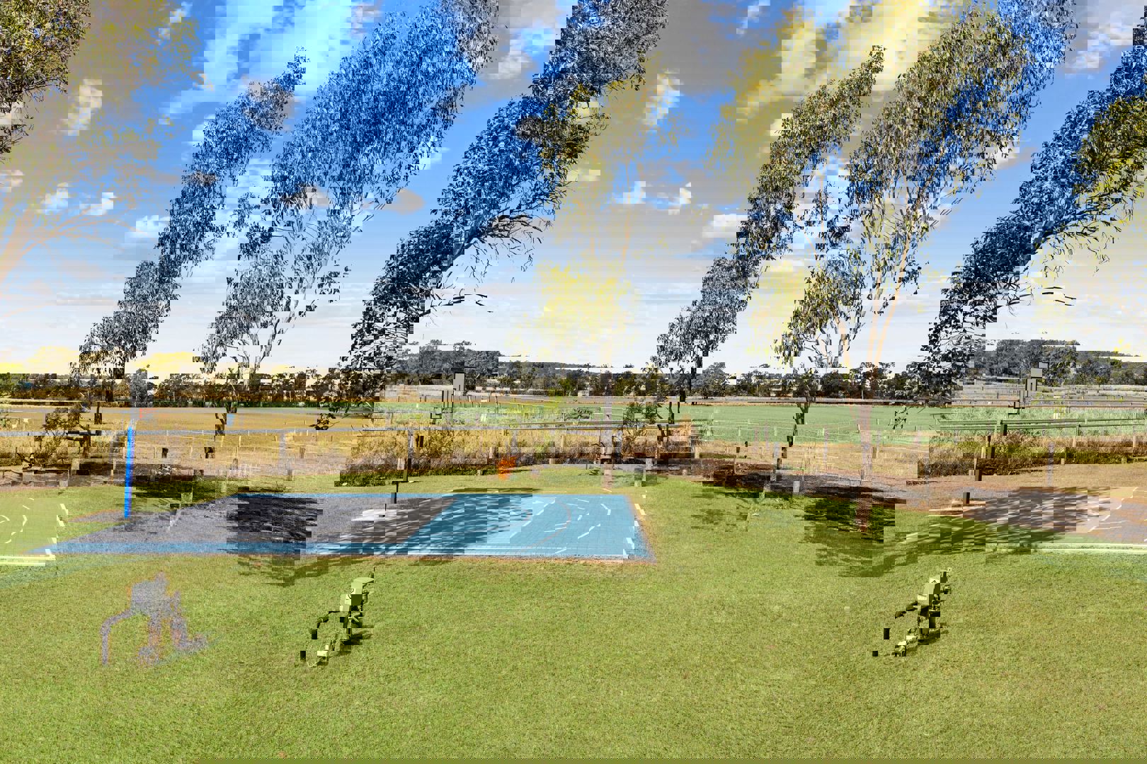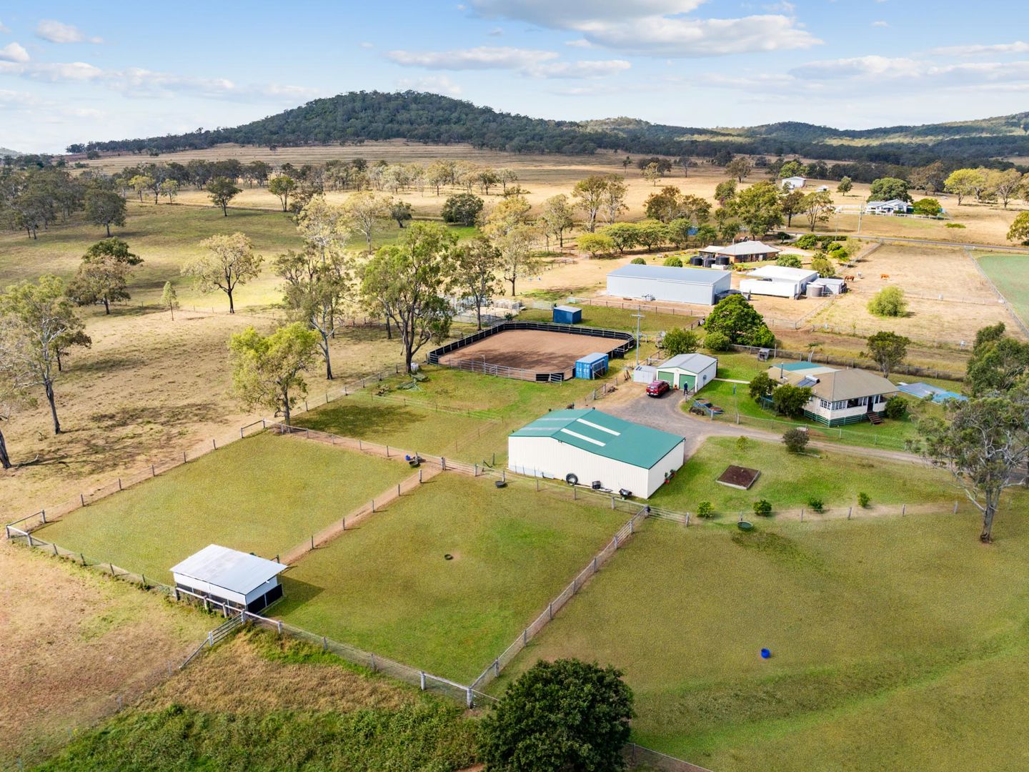 From the air, the setup speaks for itself. A 25m x 22m arena with solid panel fencing and rubber kickboards anchors the property, with water connected to every paddock and brand new boundary and electric fencing throughout. Water security is exceptional - two potable bores service the property, one fully equipped and operational, the second unequipped and ready to develop.