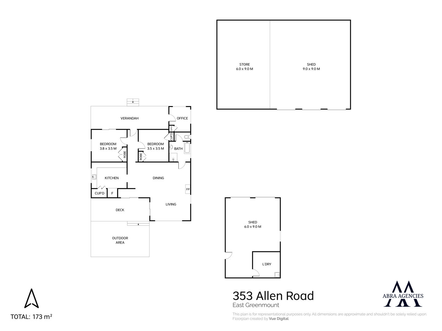 • Large colorbond shed + high-clearance machinery shed with lean-to
