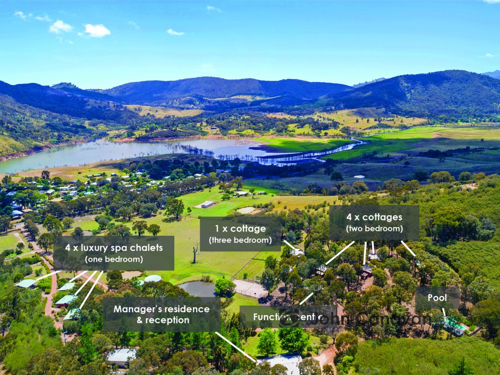 The Black Sparrow Resort is perfectly positioned in the Howqua Valley at the foothills of the breathtaking High Country, overlooking Lake Eildon. This 50 acre resort property and accommodation business for 37 paying guests, plus comfortable manager's residence offers an ideal opportunity for a family or working couple to receive a great income whilst living and working in the ideal 'tree change'.