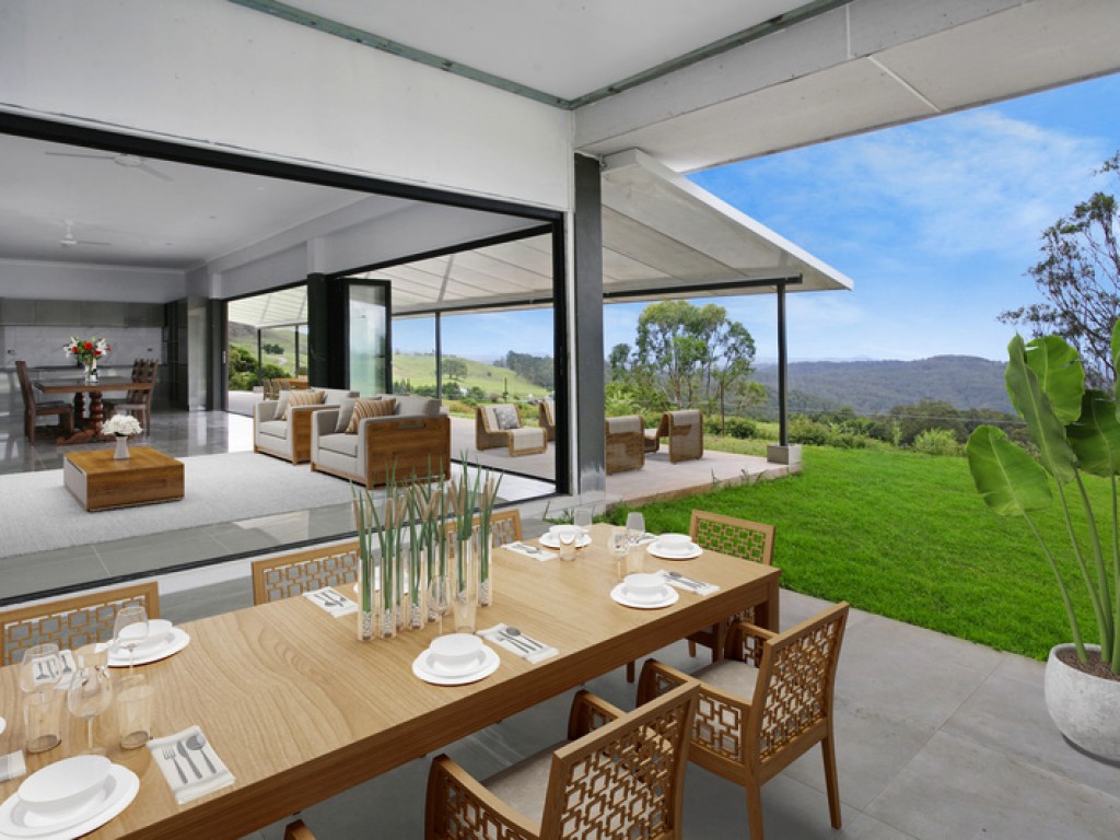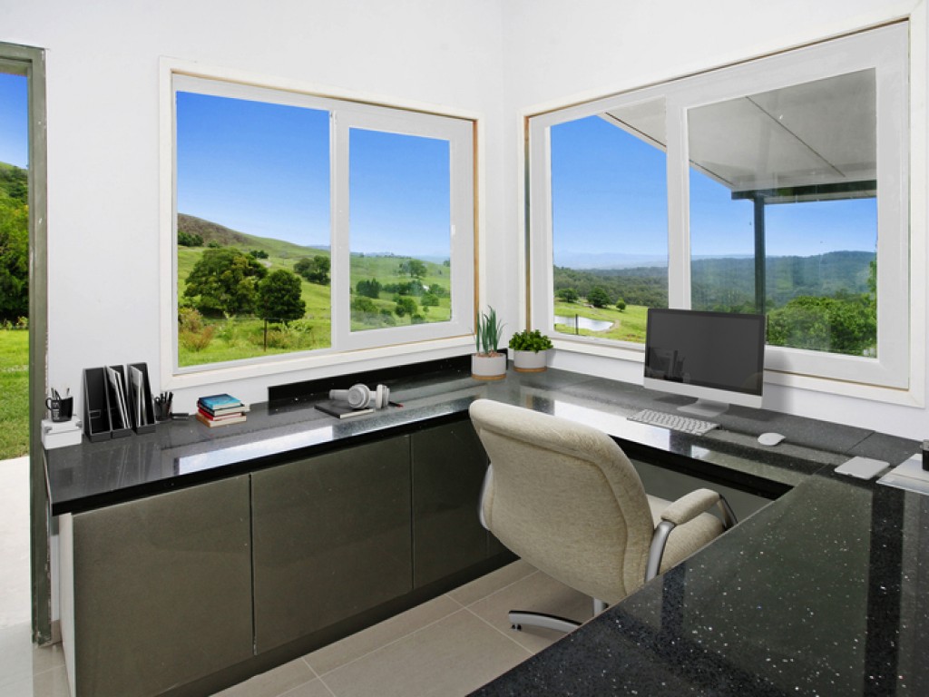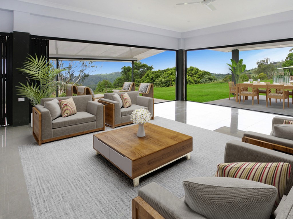 Imagine waking up to the sound of the birds and the glint of the sunshine on the ocean, this dream could be yours. If you are seeking peace, tranquillity and total privacy, this is the property for you! Privately positioned down a long driveway you will find this unique home, nestled behind a hill ensuring protection from the winds and western sun. The property is cleverly designed with four separate pavilions, all are North East facing, with magnificent views over the Hinterland and out to the Ocean. Each pavilion is designed for the best possible temperature control all year round including heated slabs in all the tiled areas and a unique roof design which ensures plenty of air flow in the roof cavity during the summer months. Core filled block wall construction creates a comfortable climate no matter what the season. Verandahs run the full, front length of both main pavilions allowing outdoor living all year round.