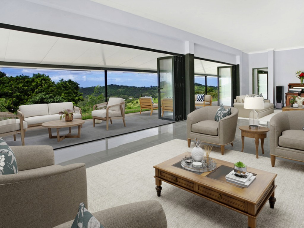 • The master bedroom pavilion also features a 5.4m x 10.8m living area with bifold doors on all sides, allowance for a dual gas fire place between the living and bedroom area